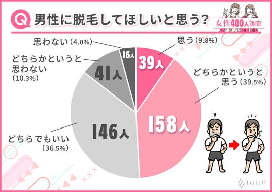 一方で、「どちらかというと思わない」「思わない」と回答した方も15%程度見受けられたため、メンズ脱毛をしてほしくないと考えている女性も一定数はいることが分かりました。