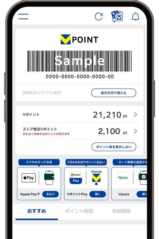 ・モバイルVカード(Vポイントが貯まる・使える、Vマネーでの決済が可能)