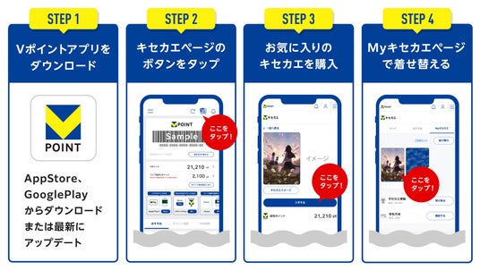 その第一弾として、Vポイントアプリの「モバイルVカード」を好きなデザインに着せかえできる新サービス「Vキセカエ」を、2025年2月5日(水)より開始いたします。「Vキセカエ」のコンセプトは、「Vポイントアプリを開くたびに『好き』に会える」です。