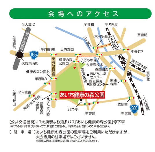 開催会場 :あいち健康の森公園(住所:愛知県大府市森岡町9丁目300番地)