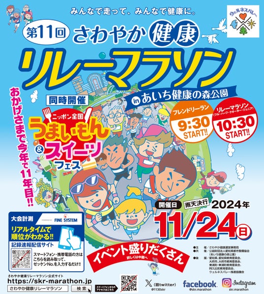 株式会社ヤマナカ(本社:愛知県名古屋市、代表:中野 義久)は、2024年11月24日(日)に愛知県大府市のあいち健康の森公園にて開催される「第11回さわやか健康リレーマラソン」に特別協賛いたします。連結子会社であるプレミアムサポート株式会社が運営する『アスティスポーツクラブ』全面協力の下、毎年恒例のチアダンスや準備体操などのイベントも実施いたします。