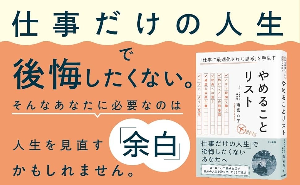 株式会社大和書房(本社:東京都文京区、代表取締役:大和 哲)は『やめることリスト 「仕事に最適化された思考」を手放す』(雨宮百子 :著)を2026年4月22日に発売いたします。