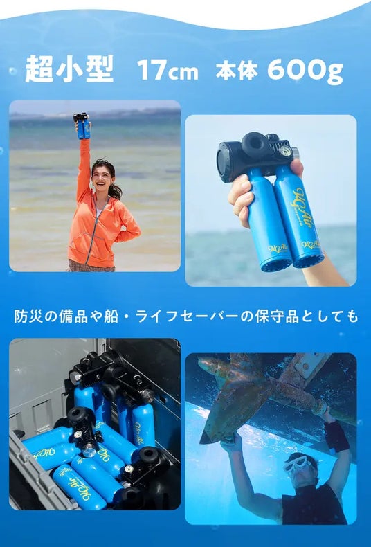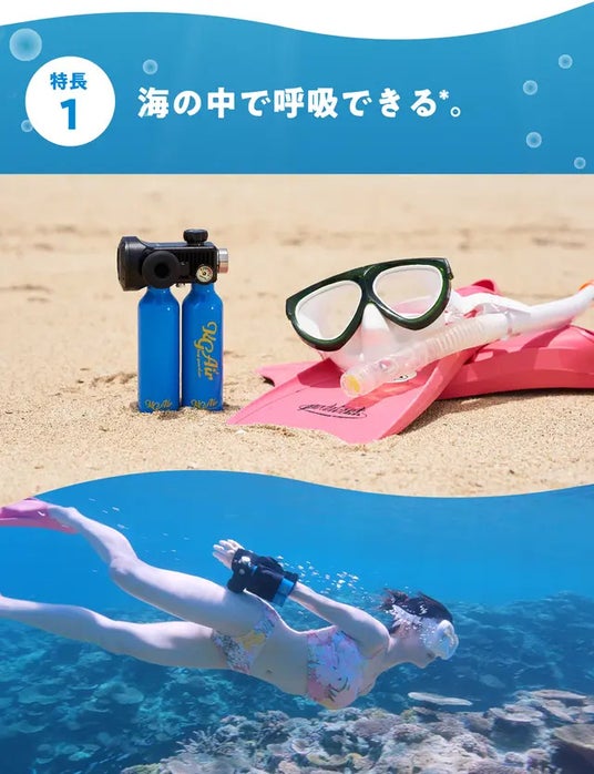 シュノーケルでも手軽に海の中へ潜ることができる超小型の酸素ボンベ
