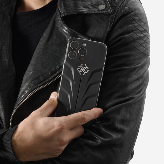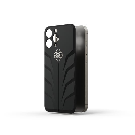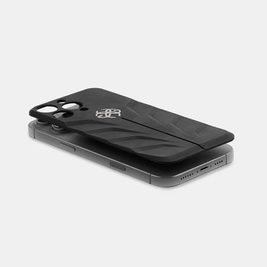 ケース中央には、ブランドを象徴するシンボルロゴがあしらわれています。この繊細でありながら印象的なディテールが、ケースのダイナミックなデザインを引き立て、ブランドの品質と卓越した職人技へのこだわりを見事に表現しています。ロゴのカラーは、チタニウムグレー、ゴールド、ブラックの3色展開、お手持ちのiPhoneに合わせてお選びいただけます。