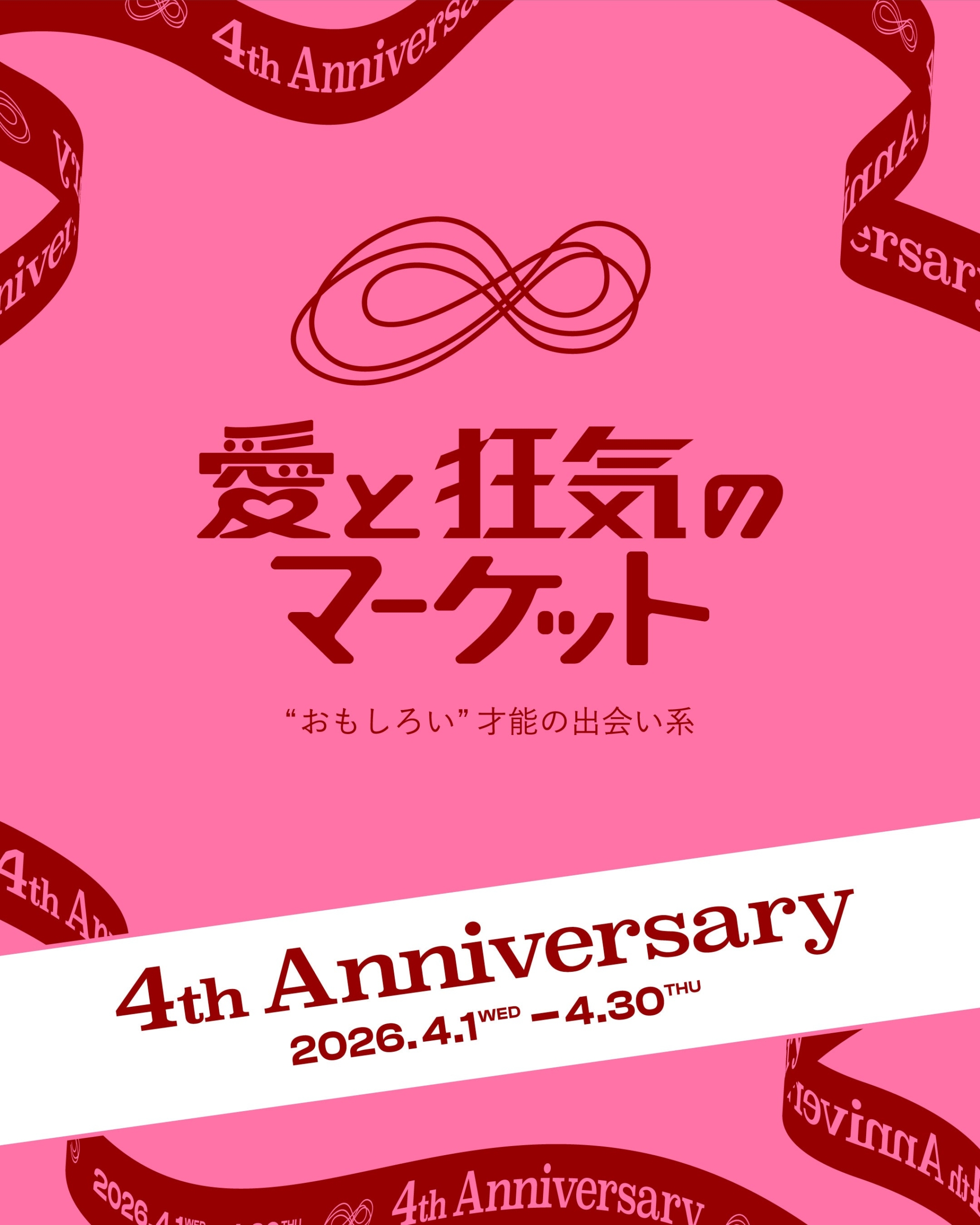 ラフォーレ原宿の自主編集売り場「愛と狂気のマーケット」が4月28日(土)にオープン4周年を迎えることを祝し、「愛と狂気のマーケット 4th Anniversary」としてさまざまな企画を展開します。