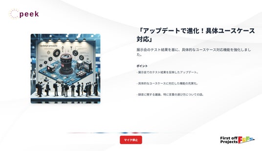 高校生と大学生によるビジネスコミュニティ「First off Projects」は、AI会話記録サービス「peek」をリニューアルリリースしました。
