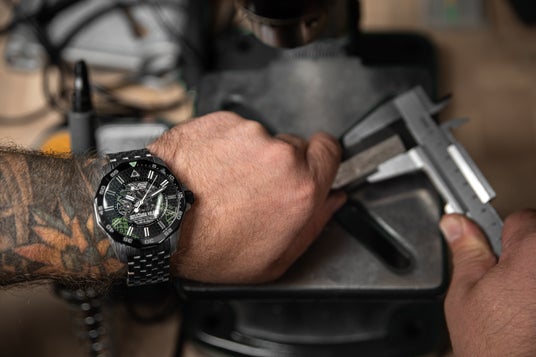 ブラックのベゼルには耐久性に優れたセラミックリングが、時計の耐久性と耐傷性を向上させます。