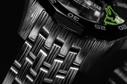 316Lステンレススティール製のケースとソリッドブレスレットは、Wolf Woolエングレービング装飾が施されています。