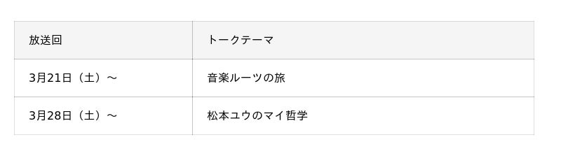 後半は「マイ哲学」をテーマに、松本ユウさんが音楽制作の現場で得た学びや、音楽との向き合い方について深掘ります。さらに、『生きるは愛』を通して感じるAI時代の音楽観についても、アーティストの立場から深い音楽談義が展開されます。