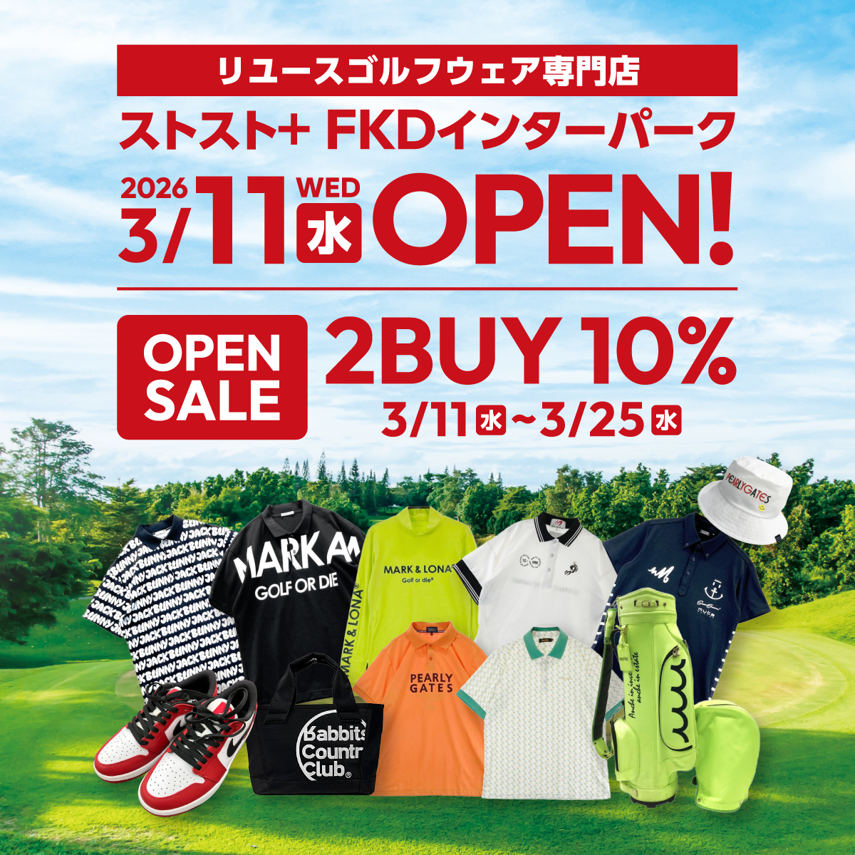 リユースゴルフウェア専門店「ストスト+FKDインターパーク店」3月11日から期間限定オープン!3月25日までの2週間は2Buy10%OFF SALE開催中。