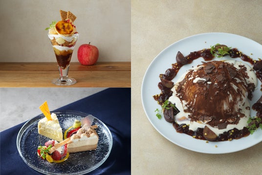 今年の冬の新作は、3つの贅沢なスイーツをご用意しました。ふわふわスフレにコーヒーソースと渋皮栗を合わせた「ふわとろフロマージュスフレ~マロンティラミス~」、北海道余市産りんごと紅茶ゼリーが上品に調和した「余市産りんごのブリュレパフェ」、さらに看板商品「ドゥーブルフロマージュ」とヘーゼルナッツ風味の「ショコラオレノワゼットドゥーブル」を一皿で楽しめる「季節のドゥーブルプレート」。この冬限定の特別なスイーツで、心温まるひとときをお過ごしください。
