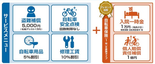 〇自転車盗難時再購入お見舞い金補償(盗難補償)(電動アシスト車:最大1万円、一般車:5,000円)