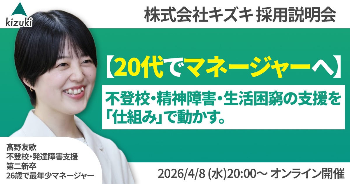 不登校・精神発達障害・生活困窮の支援を「仕組み」で動かす。20代でマネジャーへ! 株式会社キズキ採用説明会