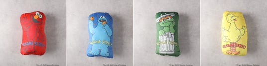 表面が微起毛の素材でできたモチモチな肌触りのSESAME STREETの仲間たちのクッション。
