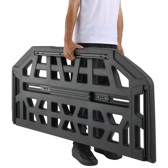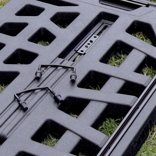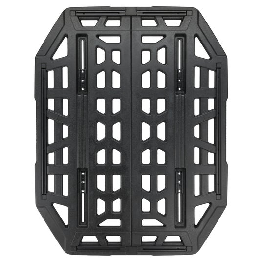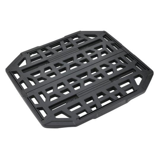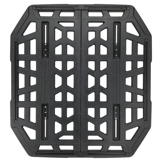 ルーフラックとしては類を見ない、ブロー成形による中空構造樹脂ボード。従来の同サイズアルミ製ラックと比べ33%の軽量化を達成しました。 Sサイズは約10kg、Mサイズは約11kg、Lサイズは約12kg。セパレート構造のため、片側約5~6kgの軽さで大人1人でも持ち運びが可能です。