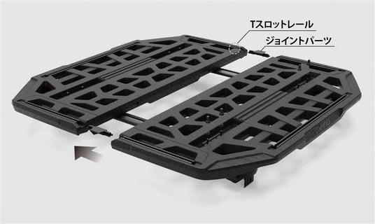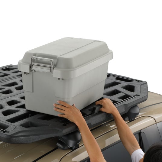 一般的なルーフラックやルーフデッキ※は、金属製のパネルやパイプを組み合わせて作られているため部品が多く、重量もあり、取り付けや組み立てに手間がかかるという課題がありました。デザインも、パネルやパイプの形状に制約されるため自由度が限られていました。そこで当社は2023年春、樹脂素材に着目。ルーフキャリア市場で初となる軽量で使いやすい樹脂素材のルーフデッキを開発しました。さらに、セパレート構造にすることで持ち運びや取り付けが簡単。デザインや仕様にも自由度があり、多穴にしたことで積載する荷物をフレキシブルに固定することができる新しいルーフデッキです。