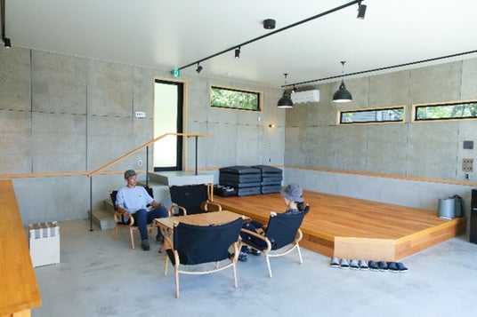 車好きのガレージを疑似体験できるコンセプトサイト。ガレージ内には就寝スペースがあり、冷暖房、BBQガスグリル、キッチン、冷蔵庫も完備。外には焚き火もできる駐車スペースがあります。