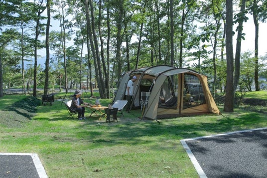 木々に囲まれた区画サイト。木で区切られているためプライベート感があります。全サイト電源付きなので、工夫次第で様々なキャンプスタイルに対応可能です。