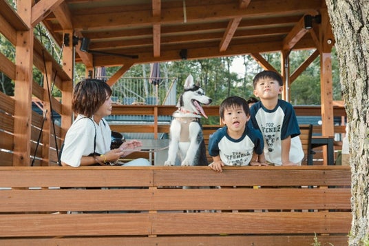 ノーリードで愛犬とキャンプが楽しめる特別なオートキャンプサイト。椅子・テーブル・キッチン(温水対応)完備のルーフデッキ仕様なので、好きなテントと愛犬と一緒に気軽にキャンプを楽しめます。100Rコースビューが望める環境で少し贅沢なキャンプを堪能いただけます。