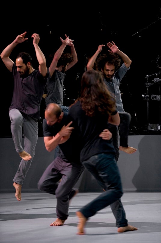 8人のダンサーと2人のドラマー、総勢10人の男たちが、「男らしさ」のくびきから逃れようとしながら、流れるような動きの変容を可能にしてみせる。地鳴りのようなリズムと波打つ身体が摩擦し合い、集団から共同体へと自由に行き来する。個々の違いを見つめ合い、結びついては離れ、差し伸べられる手によってまた結びつく……どうすれば共に生きられるのか? 他者の存在に支えられながら、ダンサーとドラマーのほとばしるエネルギーが交差し、「土地を持たない民族舞踊」ともいえる、共生に向かうダイナミックなダンスが立ち上がる!