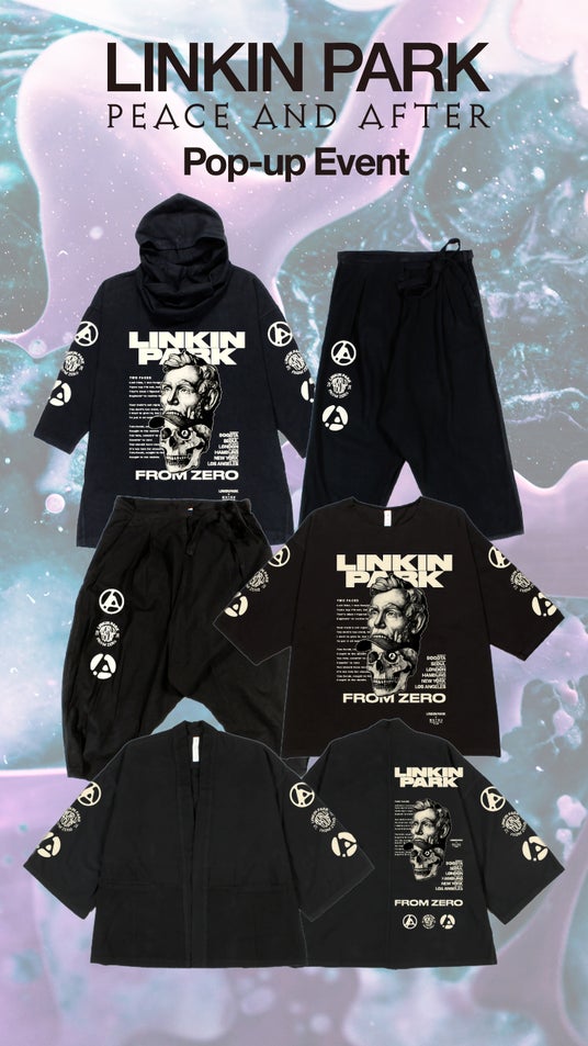 POP-UP期間にはLINKIN PARKメンバーが愛用する機材の展示もするなどコラボレーション仕様の内装も演出。その他にもLINKIN PARKオリジナルプロダクトをはじめ、LINKIN PARKと日本人アーティストUSUGROWやLAのブランド Prospective Flowのデザイナー MUTSUとのコラボレーションピースも販売致します。本コレクションは、2024年2月8日(土)より開催されるPOP-UPでローンチを予定。2月15日(土)までの期間限定販売となります。また、2月8日(土)よりPeace and After公式オンラインストアでの発売も実施いたします。