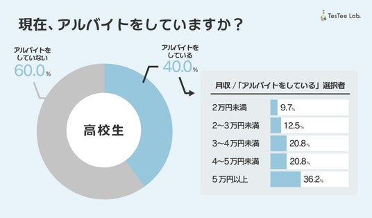 まず、高校生を対象に現在アルバイトをしているかどうかを尋ねたところ、「アルバイトをしている」と回答した人は40.0%でした。