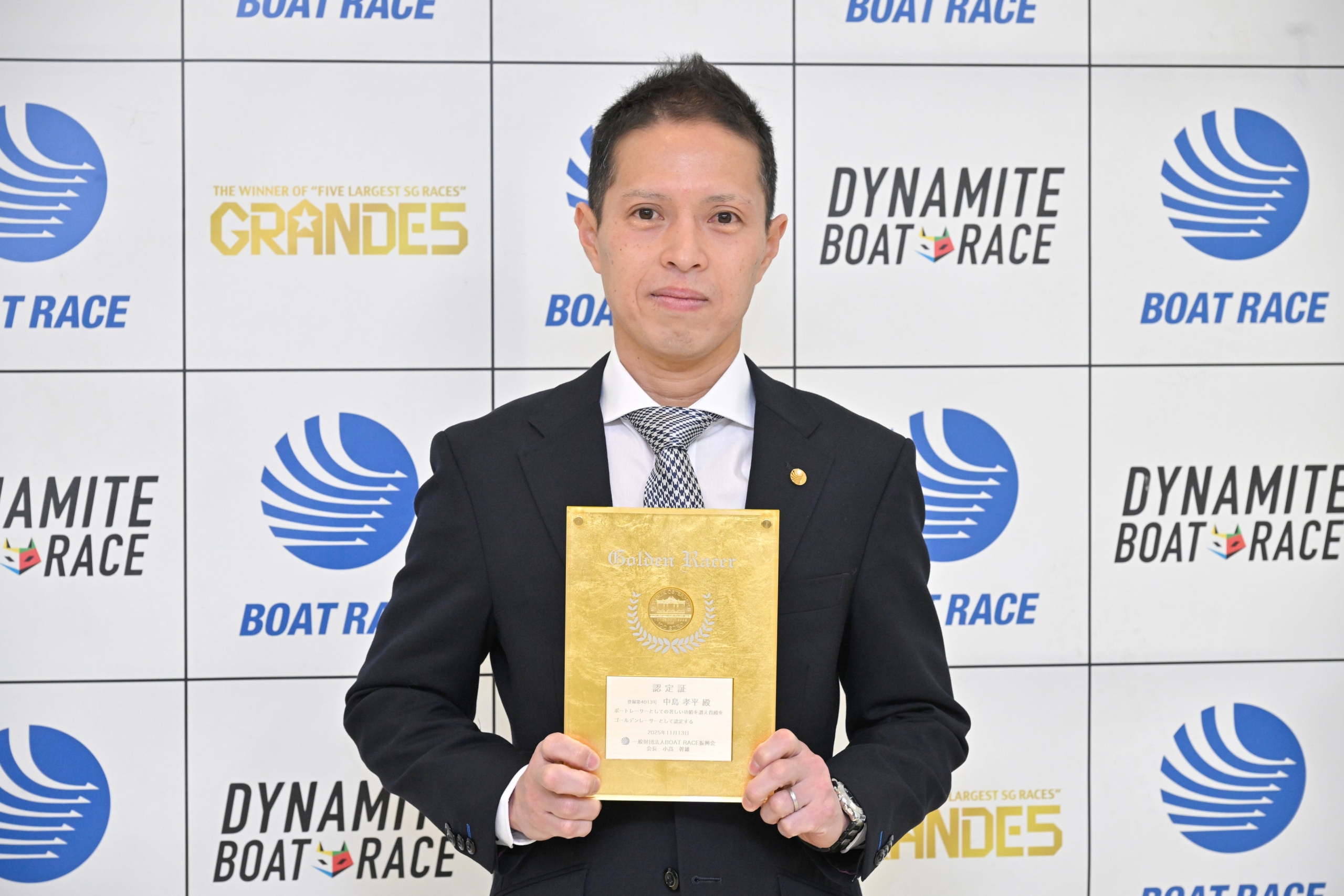 11月13日(木)、BOATRACE振興会は中島選手が認定基準(3)「ゴールデンレーサーとして適切な品格を保ち、他の模範となっている者」に該当すると判断し、史上14人目の「ゴールデンレーサー賞」に認定した。