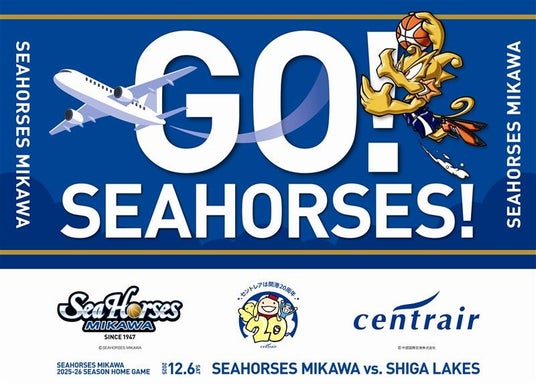 中部国際空港株式会社(所在:愛知県常滑市、代表:籠橋寛典)は、中部国際空港セントレアが2025年2月に開港20周年を迎えたことを記念し、三河地域を拠点にするプロバスケットボールチーム「シーホース三河」ホームゲームのスポンサーゲームを12月6日(土)にウィングアリーナ刈谷にて開催します。