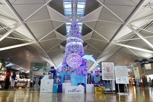 セントレアの冬の風物詩、クリスマス装飾を今年も実施。今年は昨年に続き、「海」と「山」をテーマに、海洋プラスチックごみや間伐材・廃材を活用したオーナメントでツリーを彩っています。これらのオーナメントは空港事業者や常滑市内の小学生、地元企業、一般のお客様などが参加したワークショップで製作されたものです。また期間中はクリスマスマーケットも開催中。