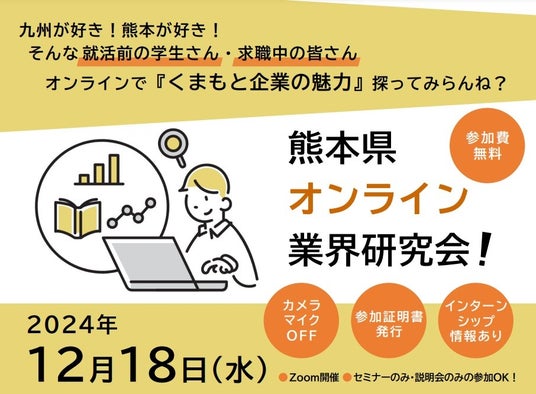 九州が好き!熊本が好き!オンラインで『くまもと企業の魅力』探ってみらんね?参加費無料のセミナー&企業説明会開催!