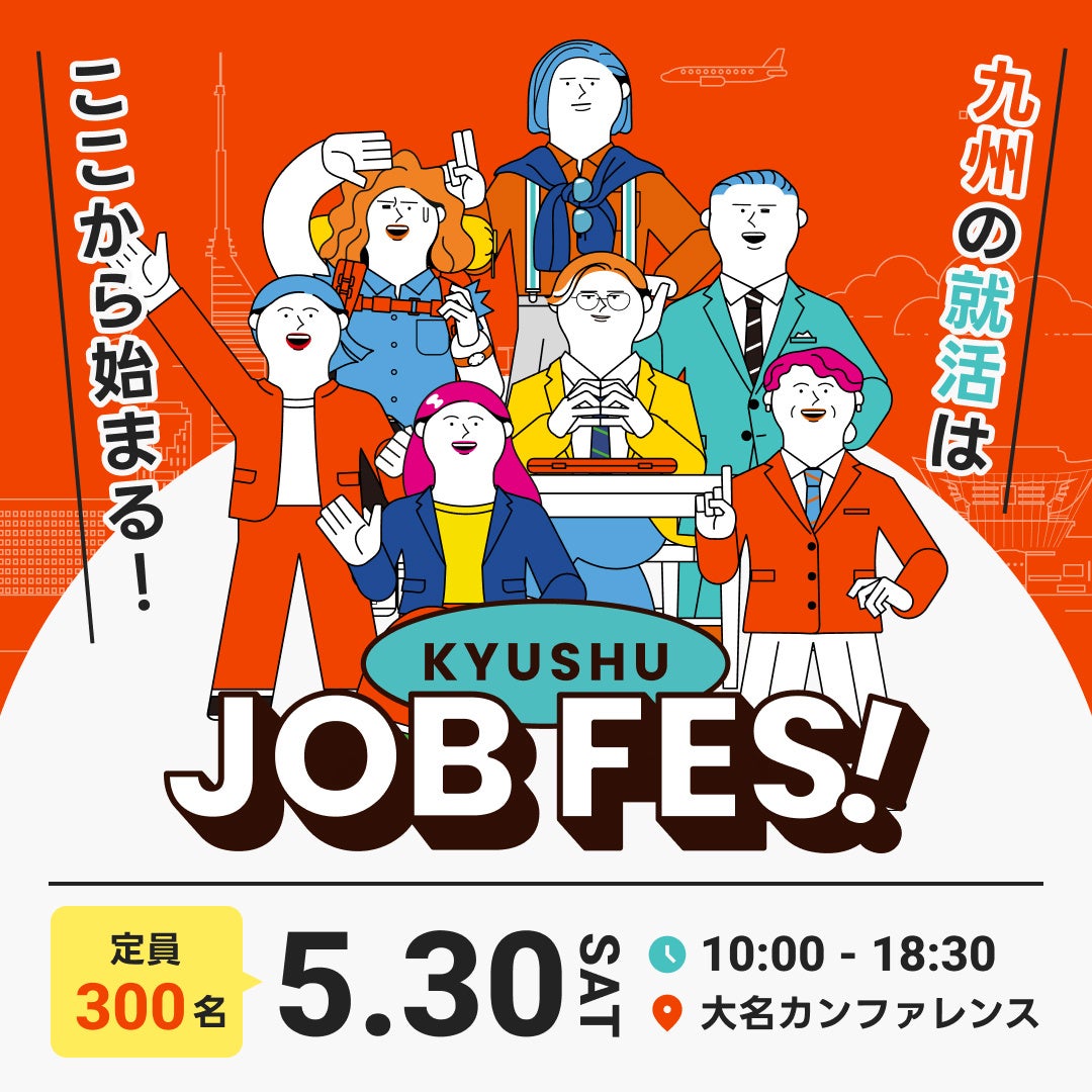 九州の就活はここから始まる。九州を代表する11社が垣根を越えて集結!共同就活イベント「九州ジョブフェス」5/30(土)に福岡・大名で開催します。
