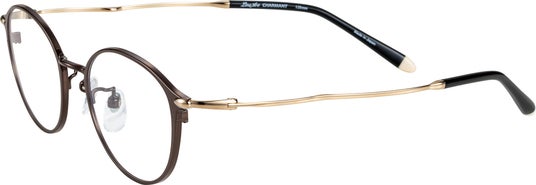 黒縁パントシェイプに、アンティーク調のブラウンをメタルに施した、モダンヴィンテージな一品です。