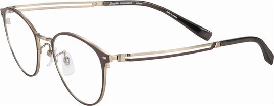 ダークブラウンのフレームにゴールドが映えるオーバルシェイプ。スタイリングを知的で華やかな印象にまとめます。