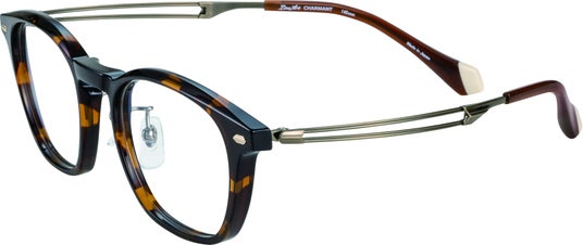 正面リム幅0.7mmの極細クラウンパントシェイプ。リムに施されたデミ柄の質感が奥行きのある表情を作ります。