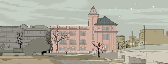 京滋にある12棟のモダン建築を取り上げ、京都市出身のイラストレーター、サヌキナオヤさんに素敵なイラストを描いていただきました。