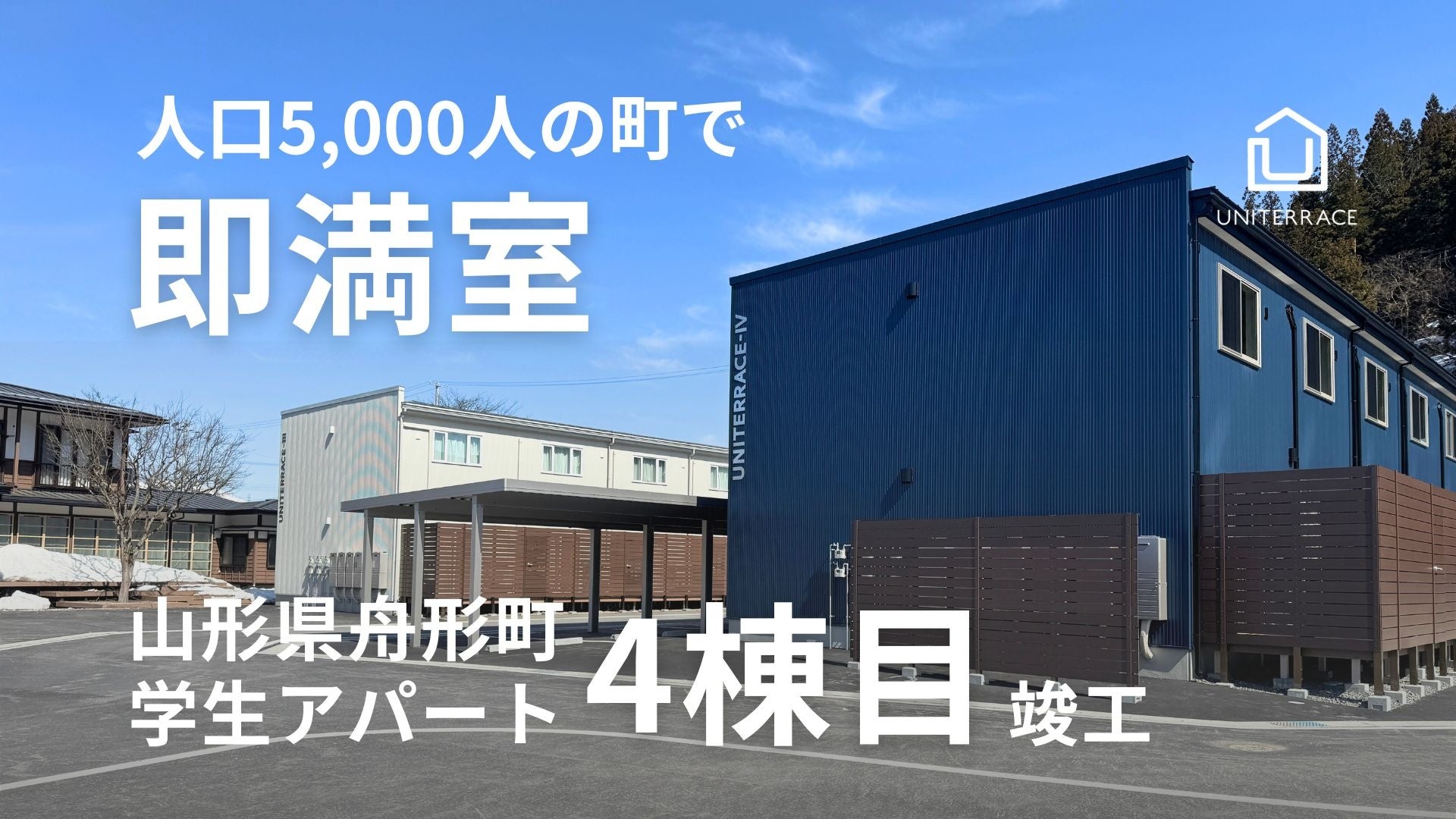 株式会社クリエイト礼文(本社:山形県山形市、代表取締役CEO:大場友和)は、山形県最上郡舟形町において、学生向けアパート「ユニテラス」シリーズの第3棟目(教職員向けを含め累計4棟目)を2026年3月に竣工いたしました 。