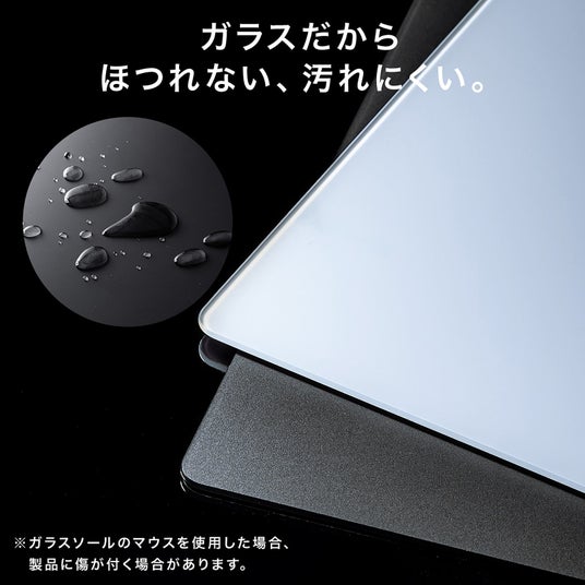 水や汚れが染み込まないガラス素材だから、お手入れはとても簡単。湿らせたクロスでサッと拭くだけで、いつも清潔に保てます。飲み物をこぼしても心配無用です。
