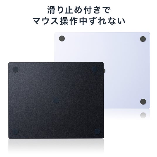 四隅には滑り止めのゴム足付き。激しいマウス操作でもパッドが動くことなく、集中力を妨げません。安定した操作環境が生産性をぐっと高めてくれます。