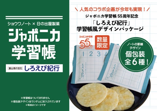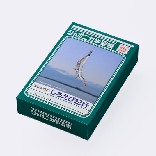 2024年にも、当社100周年記念でコラボレーションをした、学習帳風デザインの「シロエビ学習帳」しろえび紀行を発売し、話題に。今年は「ジャポニカ学習帳55周年」を記念した企画が実現し、「ジャポニカ学習帳」デザインパッケージとなりました。