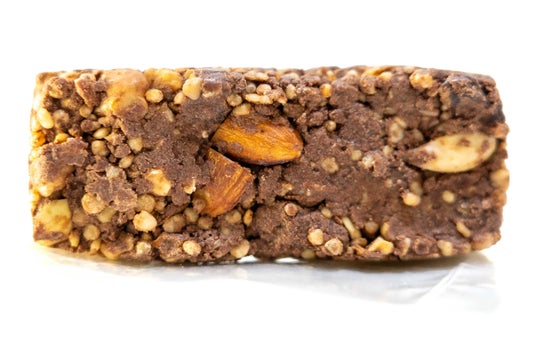 ローカカオバター・ローカカオパウダーをベースに、ミックスナッツ、クリスピーキヌア、そしてピュアダイアモンドプロテイン(WPI)を配合。