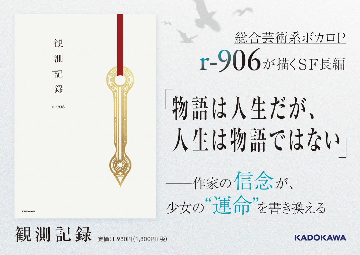 株式会社KADOKAWA(本社:東京都千代田区、取締役 代表執行役社長 CEO:夏野剛)は、2026年2月2日(月)にSNS総フォロワー数30万人超のボカロP・r-906(あーるきゅーまるろく・あるくれむ)執筆の小説『観測記録』を発売いたしました。