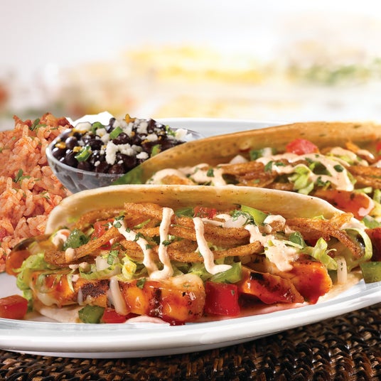 モチモチなトルティアにコクのあるシグネチャーソース、マヨネーズで味付けをし、スパイシーにグリルしたチキンをトッピング。ペッパージャックチーズ、サウスウエストサワークリームで刺激的な味わいをプラスして、ピコデガヨとサクサクにフライしたオニオンをトッピングしました。サイドにオレンジブラックビーンズとトマトチキンライス付き。