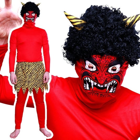 赤い全身タイツとリアルな鬼面が本格的で、子どもも大人も驚く仕上がりです~