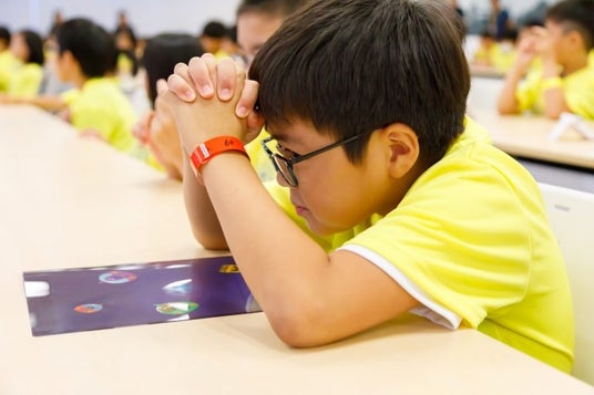 問題に取り組む子どもたちの表情は真剣そのもの。問題が解けた瞬間、喜びの声があちらこちらで響き渡り、歓喜のポーズを取る姿が見られました。
