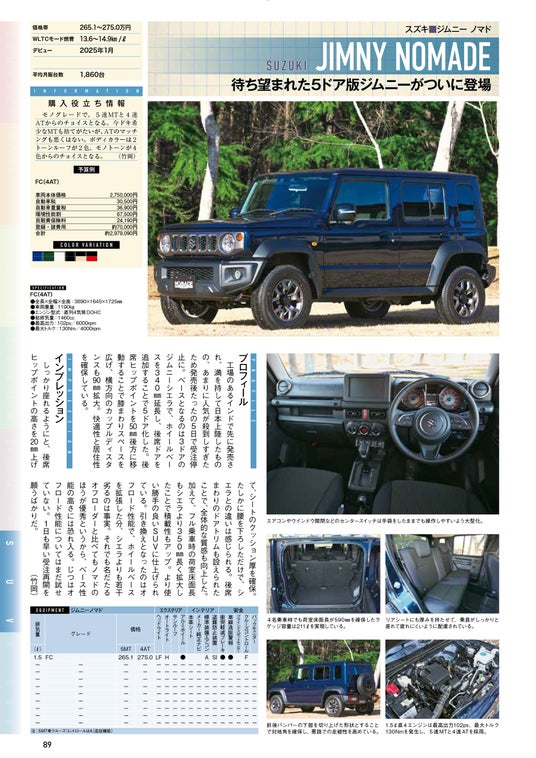 主要グレードの価格や装備を比較検討できる一覧や、12人の自動車評論家が実際の試乗に基づいて執筆した各車解説など、新車情報を大きな写真で詳しく解説。巻末には国産車から輸入車までの車種・寸法・性能が分かる諸元表を収録。『日本カー・オブ・ザ・イヤー』を受賞したスバル・フォレスターをはじめ、大幅改良されたトヨタ・アクアや、日産・エクストレイル、ミニ・コンバーチブル、受注を再開したスズキ・ジムニーノマドなど、気になる新車情報がこの1冊に詰まっています!