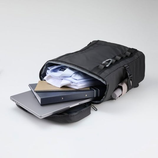 ■ボックス構造と幅広マチで、15.6インチのパソコンやA4サイズの書類、2~3日分の着替えなどを同時に収納できるバックパックです。