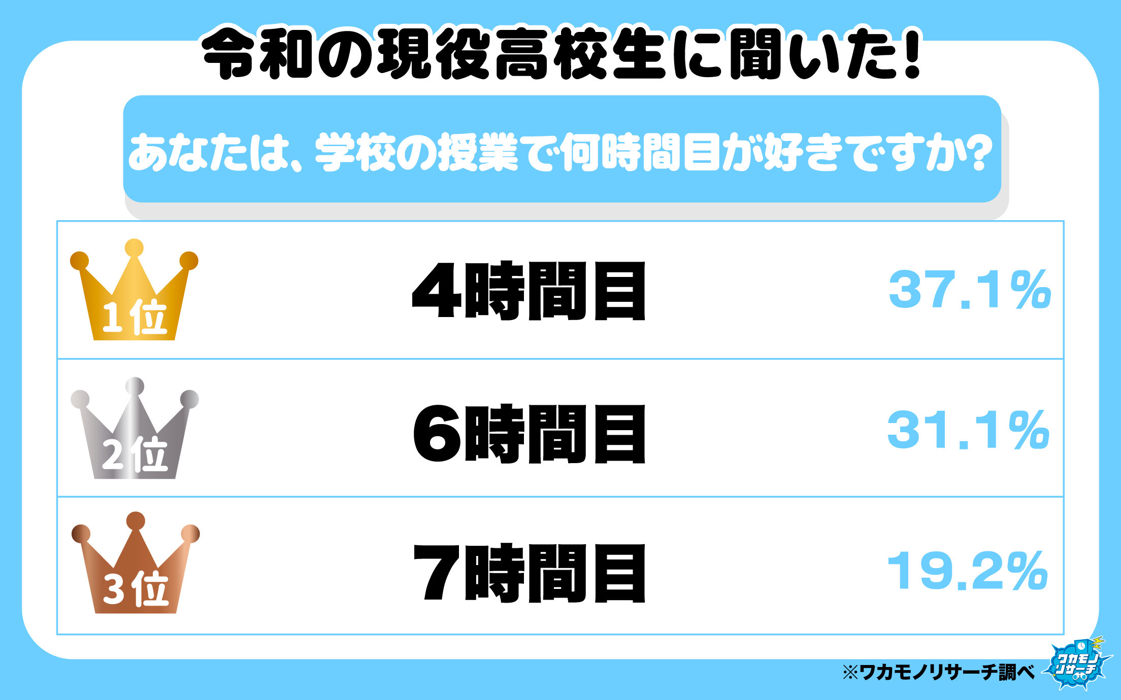 全国の現役高校生(男女)に「何時間目が好きか?」について調査を実施しました。