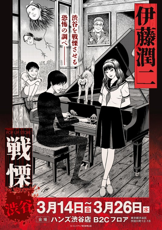 マンガ、アニメ、特撮などを始めとするサブカルチャーをテーマとした企画展を開催・運営している株式会社クレイジーバンプは2025年3月14日(金)~3月26日(水)の期間でハンズ渋谷店にて開催する【「伊藤潤二 POP UP STORE-戦慄-」 in 渋谷】の情報を公開致します。