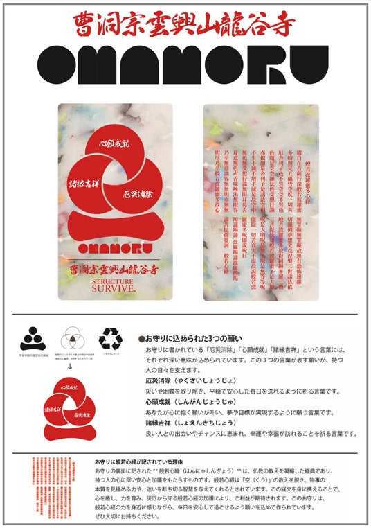 愛知県・龍谷寺とREMARE発のプロジェクトSTRUCTURE SURVIVEがコラボレーションし、 ご祈祷済みのお守り「OMAMORU」を販売開始