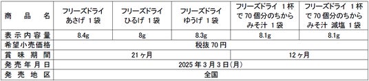 ◆関連商品「フリーズドライ粉末みそ汁」ラインナップ
